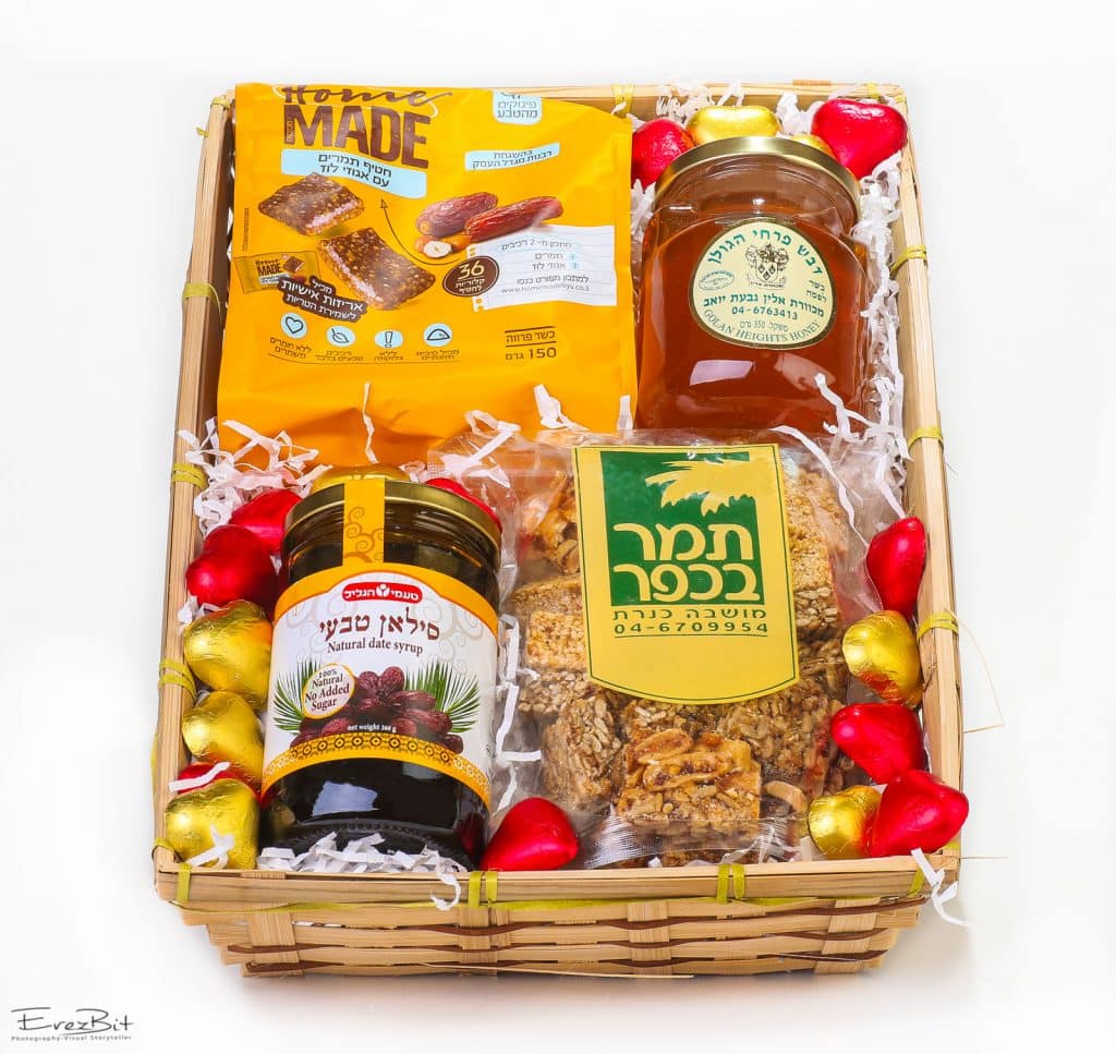 סלסלת לב המושבה , היא סלסלה נהדרת ומתוקה המכילה סילאן טבעי ומתוק, חטיפי אנרגיה , דבש טהור, שוקולדים ועוד.